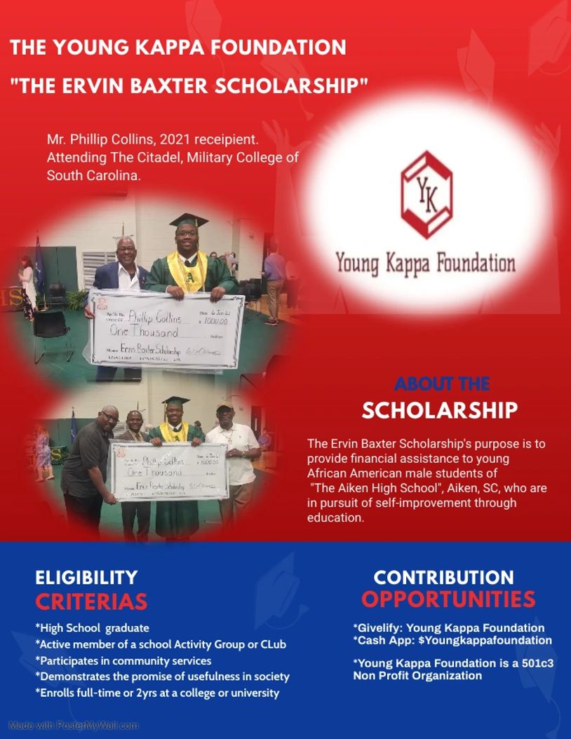 The goal of the Ervin Baxter Scholarship Fund is to impact the life experience of high school students by first providing financial assistance upon graduation to assist them in their next step in life, and to further impact their lives by becoming a mentorship arm to aid, assist, and equip them to make good life decisions, thus being a stable foundation on which young men can be built upon.
